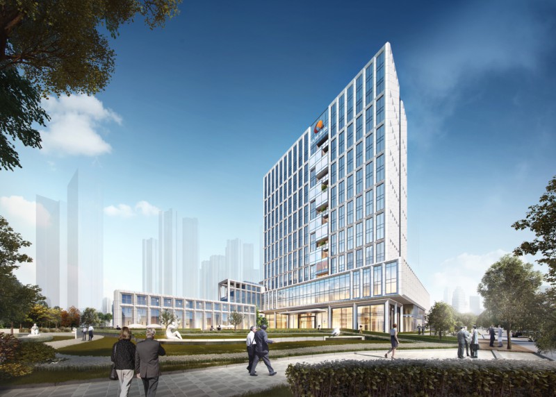 設(shè)計(jì)時(shí),結(jié)合場(chǎng)地的風(fēng)環(huán)境、光環(huán)境、熱環(huán)境、聲環(huán)境等氣候條件和地理環(huán)境,進(jìn)行場(chǎng)地設(shè)計(jì)與建筑布局,從綠色建筑角度出發(fā),最大程度地優(yōu)化建筑,營(yíng)造良好的工作環(huán)境及氛圍。
