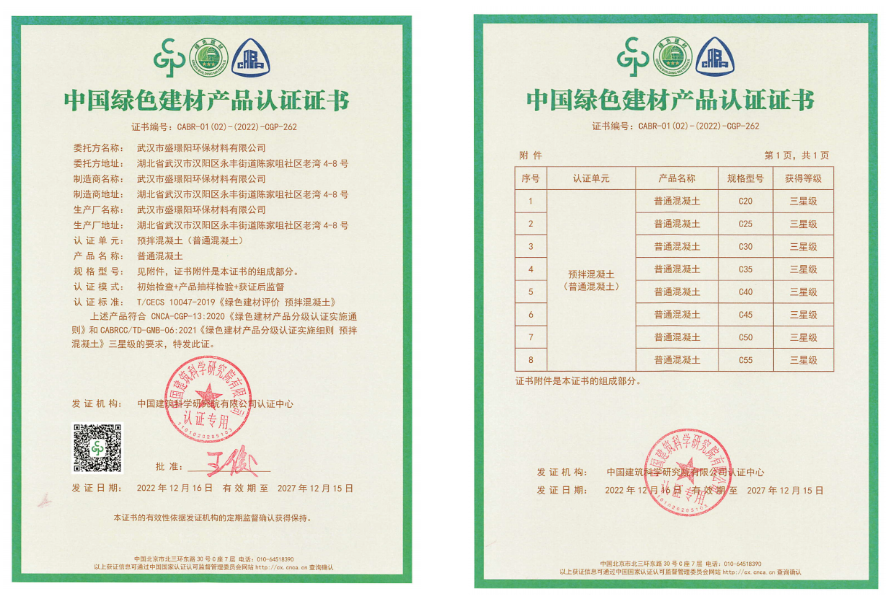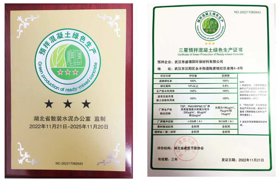 ? ? 近日,喜報傳來,漢陽市政盛璟陽公司順利通過評審程序,相繼取得了“三星預拌混凝土綠色生產(chǎn)評價證書”及“綠色建材三星認證證書”,成為一家榮獲“綠色生產(chǎn)+綠色建材”雙三星認證企業(yè)。